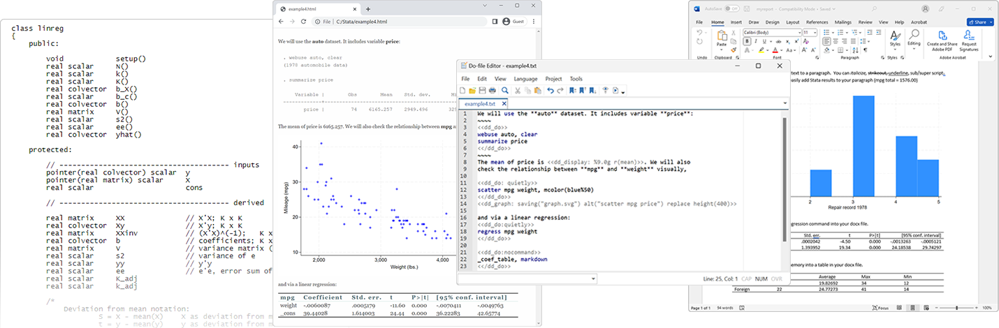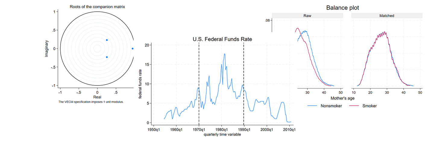 Time series | Forecasting | Panel data | Lasso | Bayesian analysis | Mata | Python integration | Import and export data | Automated reporting and dynamic document generation