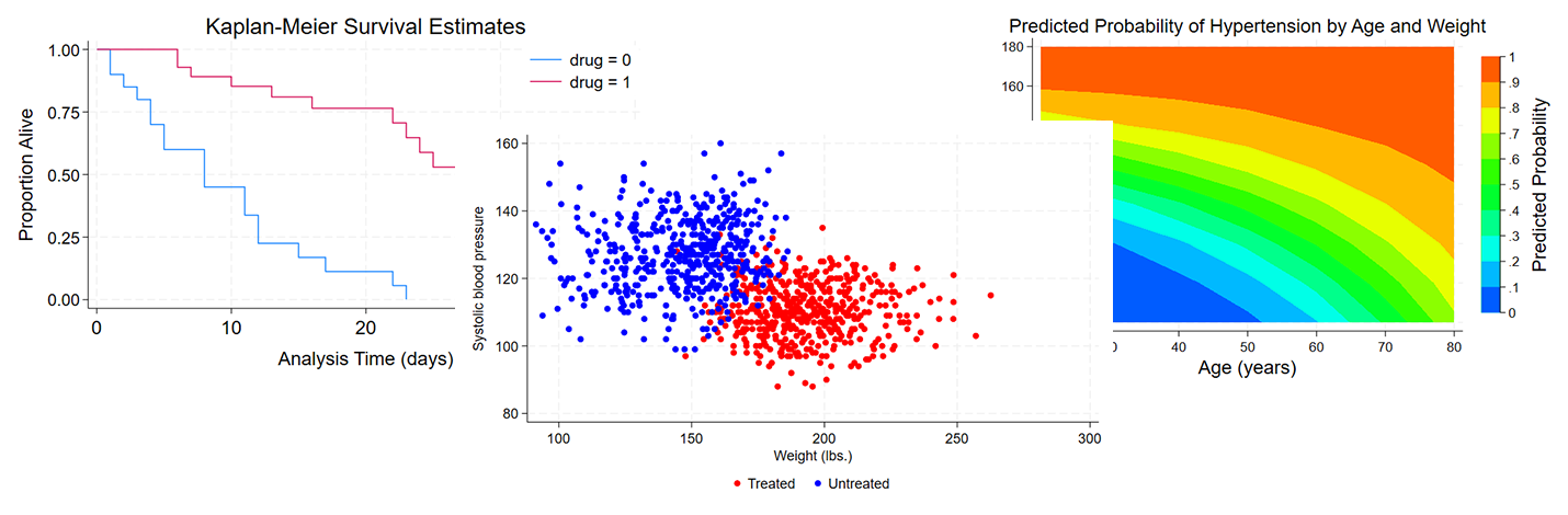 Biostatisticians rely on Stata because of its breadth, accuracy, extensibility, and reproducibility. Regardless of your focus area—public health, cancer, HIV, clinical observational studies, clinical trials—or your statistical approach, whether cross-sectional, longitudinal, or time-to-event, Stata provides all the statistics, graphics, and data management tools needed to implement and study a wide range of biostatistical methods.